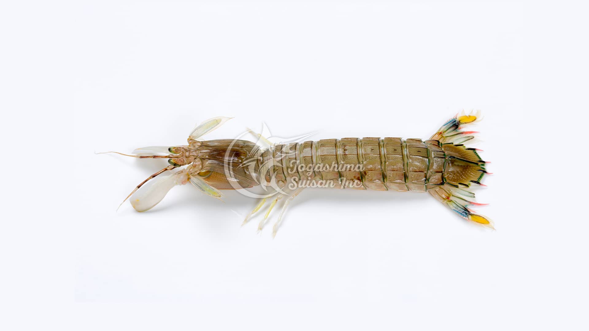エビに形状が似ている節足動物。体長は12cm~15cm前後で大きいものは20cmぐらいになるものも。尾には鋭い棘があり、前脚の一対がカマキリの鎌のような形をしている。先頭の体節(頭部)には突出した目があり、こちらはかなづちのような形態。体色はグレーから茶色でエビ類と同じような色をしている。